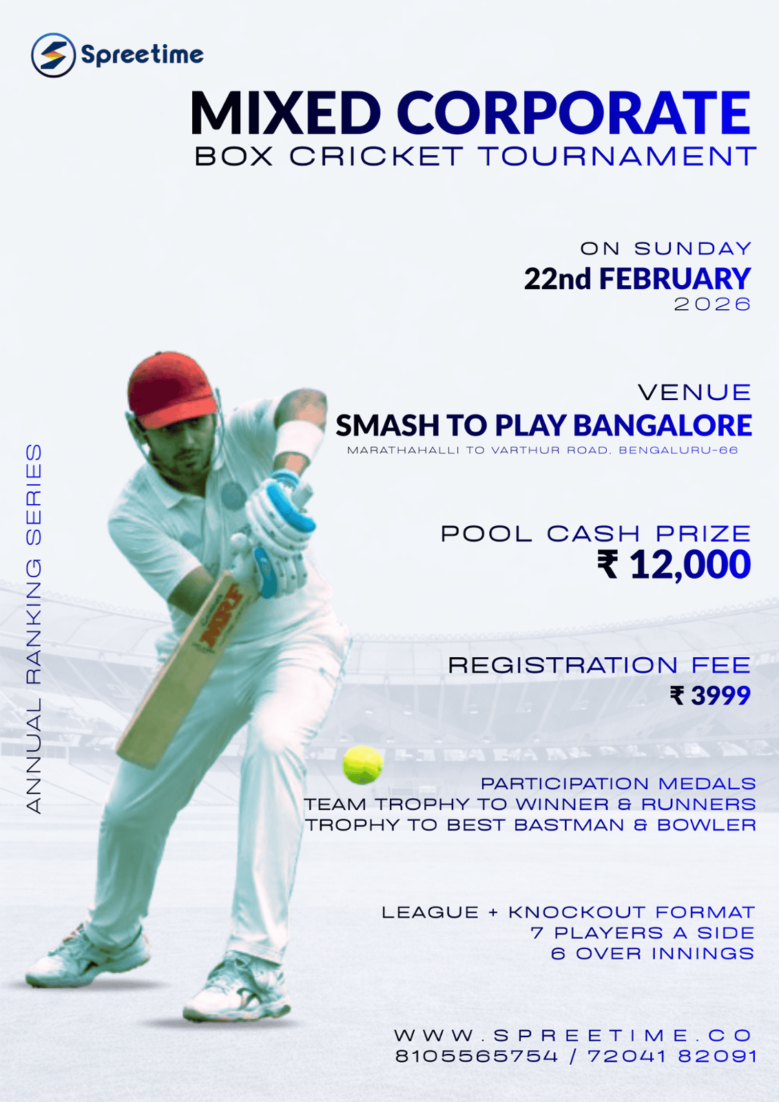 ENTRY FEE:₹ 3999 for a teamLast date to Register: 18th February50% off on Jerseys for the first 4 teams only, @flat ₹299 with Name & Number Printed